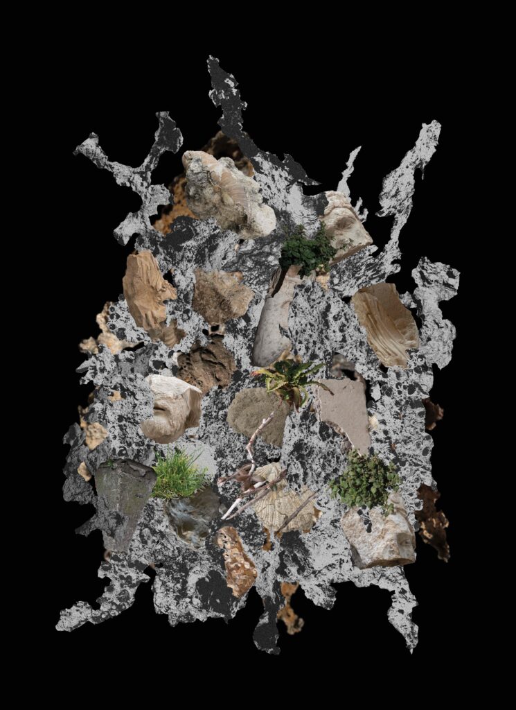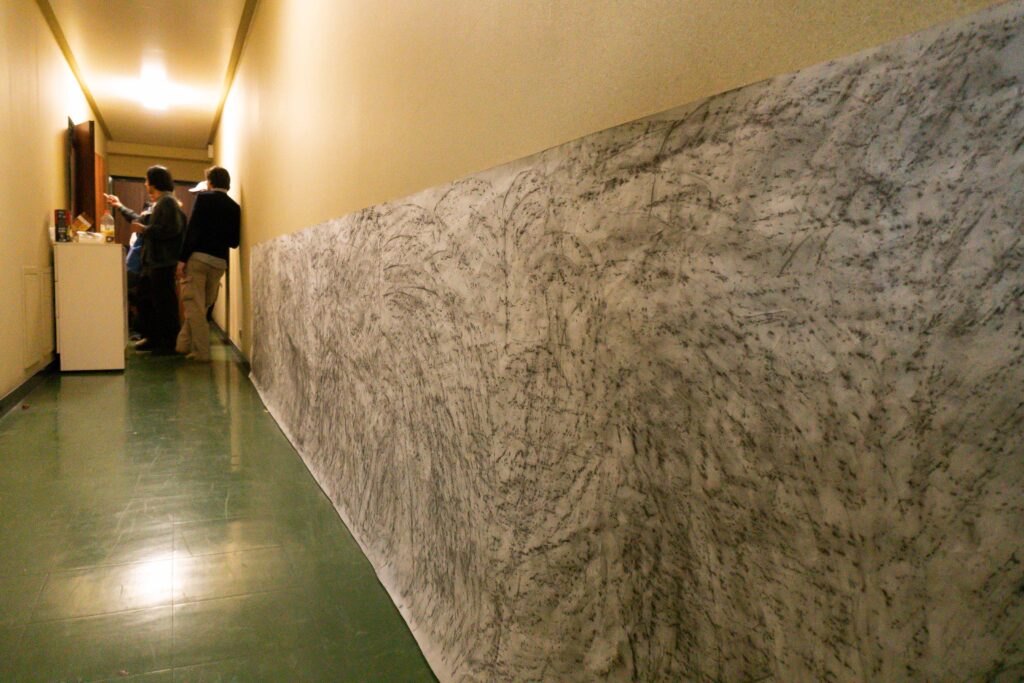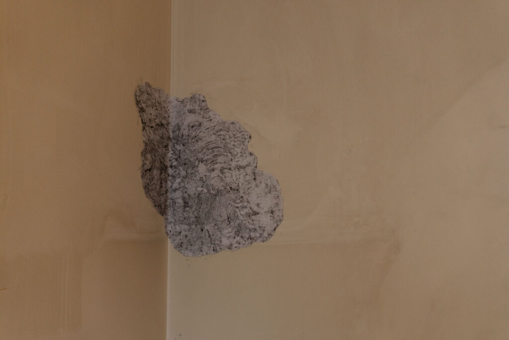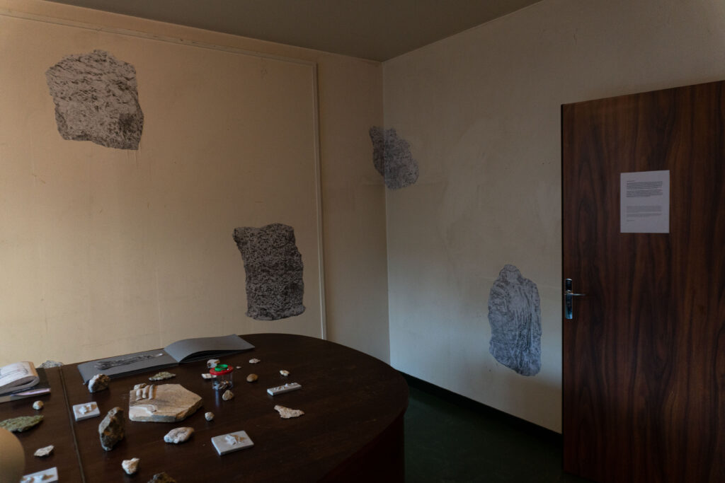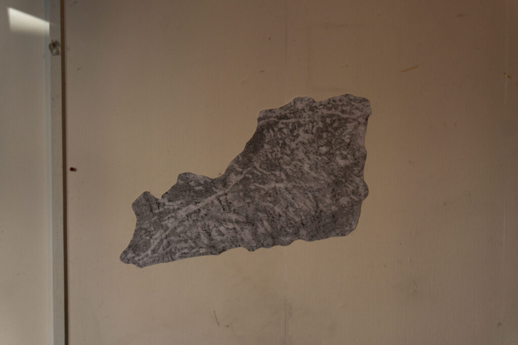 When I came to Paris I was amazed that this city was built by limestone that was extracted underneath the city a long time ago. The limestone moves out from the underground to above as statues, buildings, monuments or houses and then becomes the city that is maybe so anthropocentric.  Then, I started to walk around the city and visited a former limestone quarry at Saint Maximin to interact with them by capturing through scrubbing the texture of the stone over the paper in some places – which is for me, it is not just a texture but also a scar of the stone itself and the memory of how we as humans interact with them.